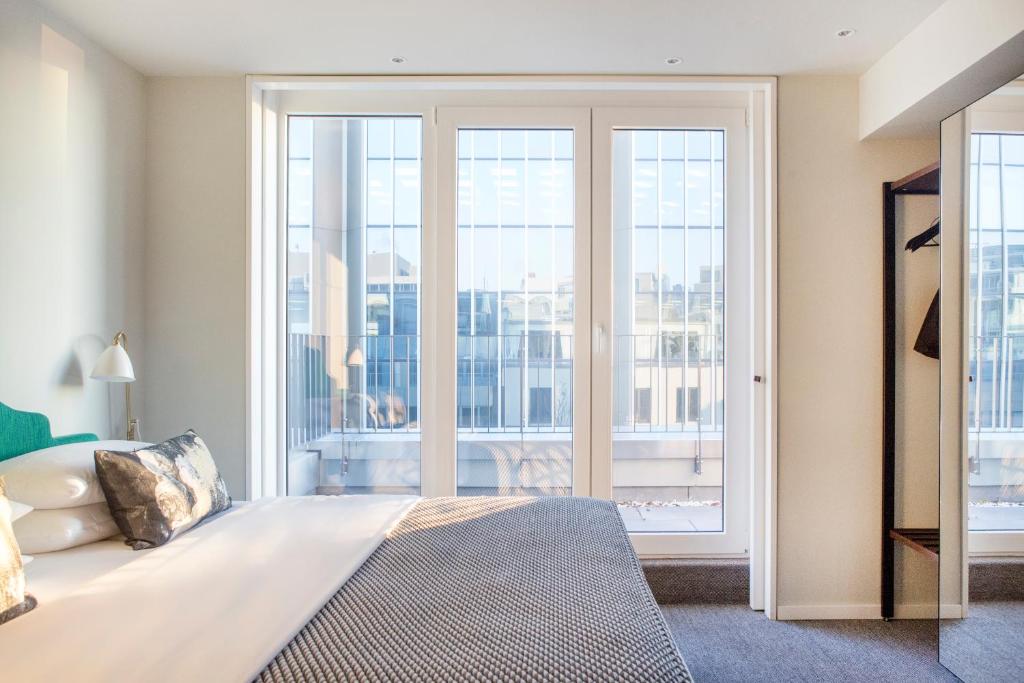 Refletindo a precisão de Düsseldorf, o hotel combina o design industrial alemão com uma influência francesa sugerida no seu nome. Os quartos alternam entre estilos industriais alemães elegantes e coloridos e toques franceses mais acolhedores de inspiração mediterrânica, todos sofisticados, confortáveis e equipados com sistemas de áudio Bluetooth.