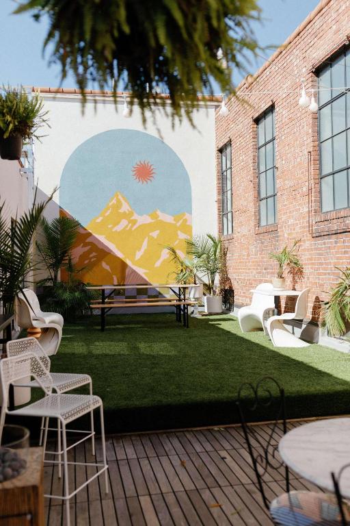 Não há dois quartos iguais, cada um concebido com uma estética boémia-chique e luz natural abundante. Os interiores apresentam tijolos à vista, tetos com vigas de madeira, janelas amplas com cortinas leves e vasos de plantas, misturando peças modernas de meados do século com mobiliário divertido, como bolas de discoteca, bancos de bambu e cadeiras de vime suspensas.