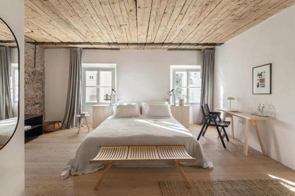 Decorado com materiais naturais em tons de madeira clara, linho e lã, o hotel convida os hóspedes a relaxar, a pegar num livro emprestado, a praticar ioga ou a saborear um vinho no tranquilo jardim. Aqui, a história está viva em cada detalhe, desde a sala de jantar decorada com afrescos até ao pátio tranquilo onde o tempo parece parar.