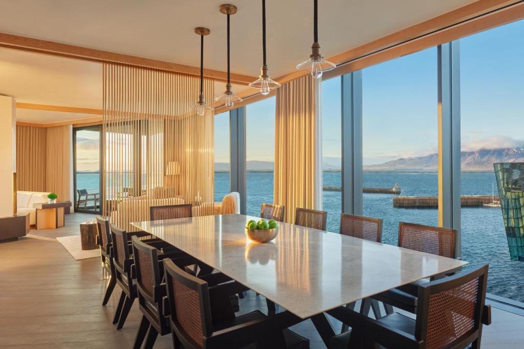 Projetado por Roman and Williams, reinterpreta o estilo moderno de meados do século com toques nórdicos, como madeira clara e artesanato local. Os seus espaços têm um ambiente cosmopolita com subtis influências islandesas, enquanto o Tides, o seu restaurante com estrela Michelin, destaca a cozinha local. Dois bares elegantes criam locais animados onde hóspedes e habitantes locais podem conviver.
