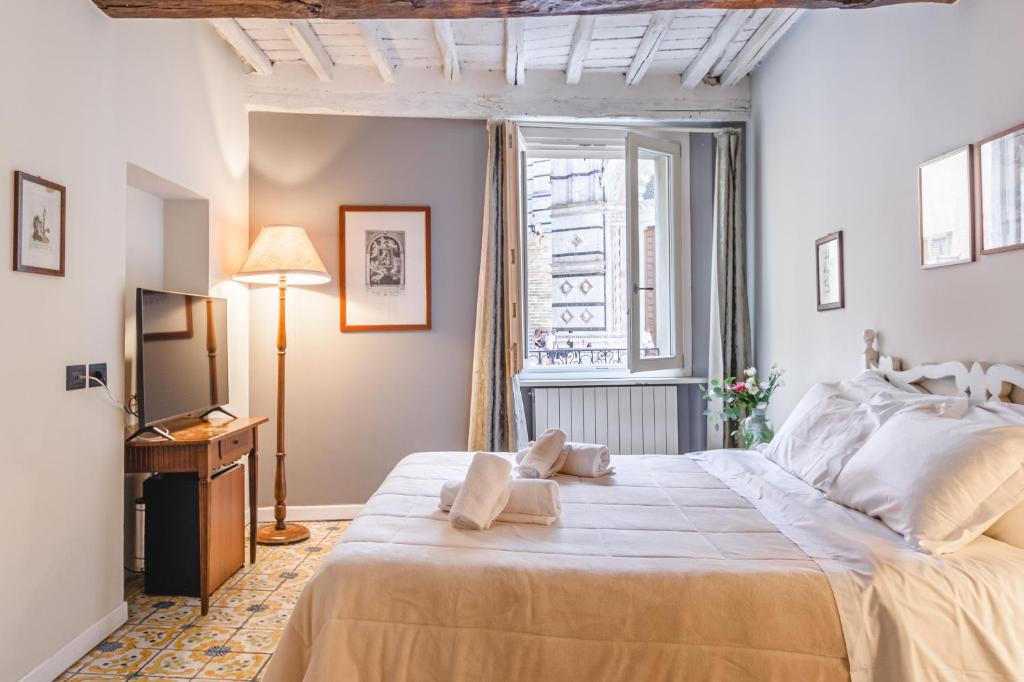 As vigas expostas e os detalhes de época conferem um toque histórico, enquanto os interiores privilegiam um minimalismo discreto em tons neutros, uma marca distintiva do design italiano moderno. O resultado é um equilíbrio refinado entre o charme do velho mundo e o estilo contemporâneo, perfeito para uma estadia íntima e elegante no coração de Siena.